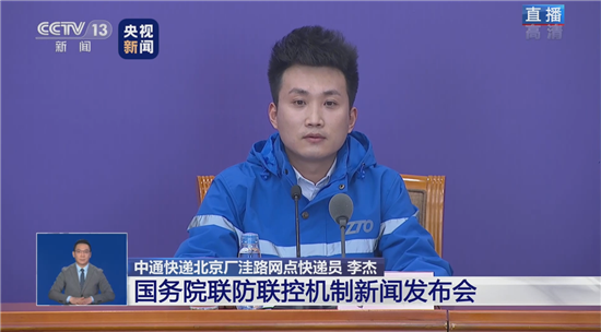 2020年3月9日下午,国务院联防联控机制召开新闻发布会,介绍邮政快递业服务疫情防控和复工复产有关情况。中通快递员李杰作为代表,讲述了疫情期间快递配送和防疫措施的情况。李杰说:“我们朴素的想法就是我们多跑路、让客户少出门。”